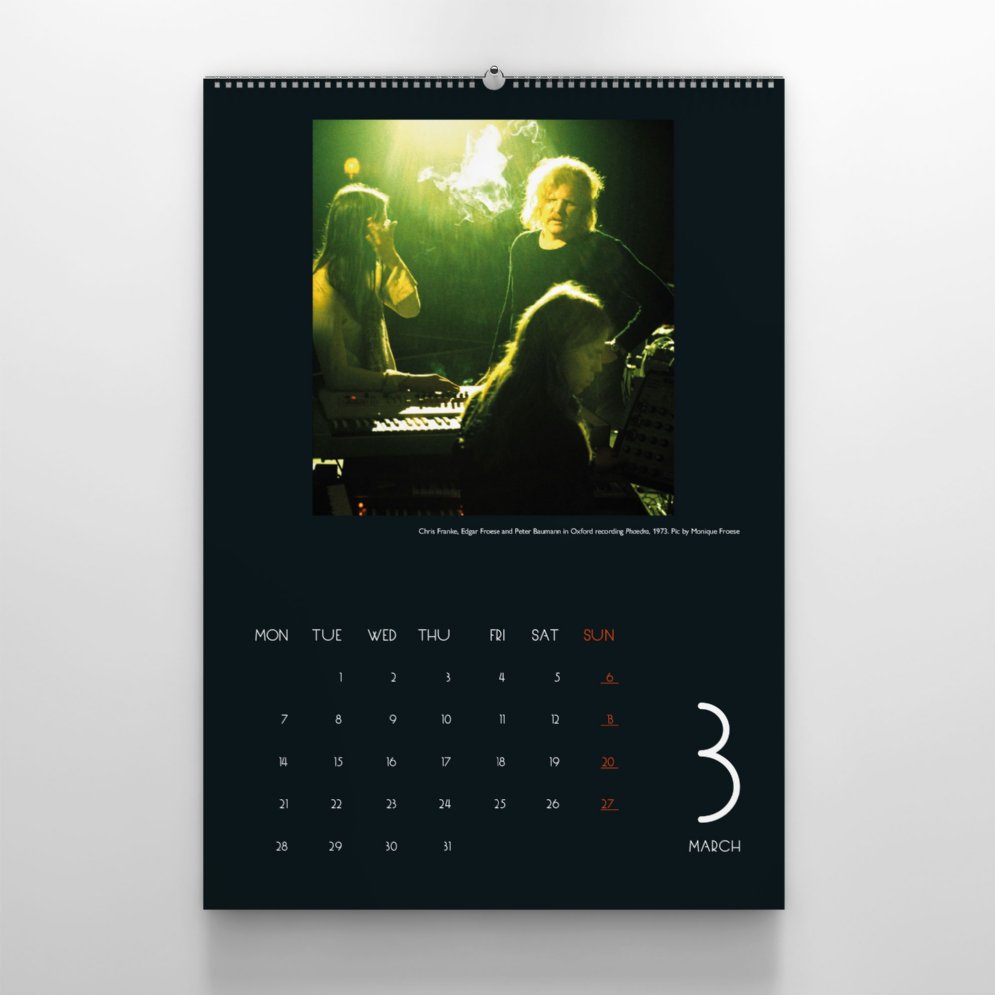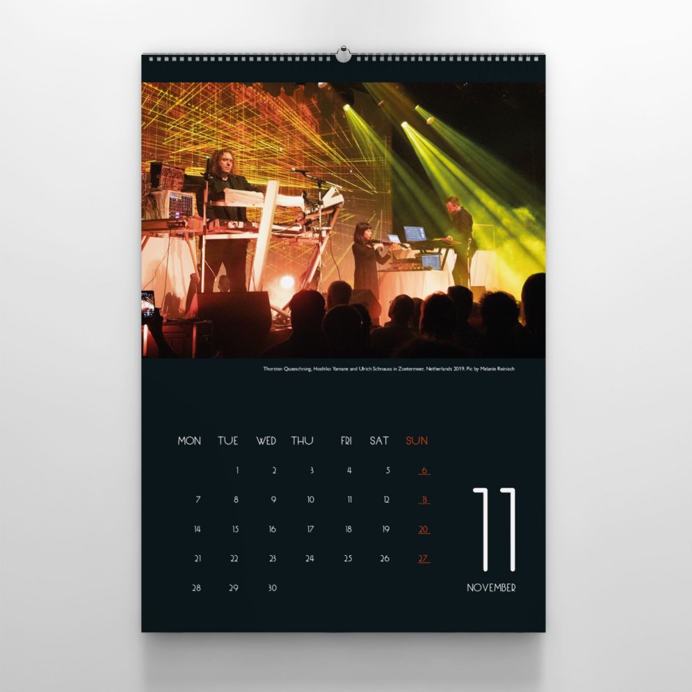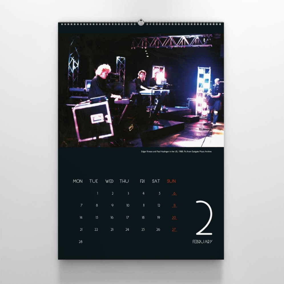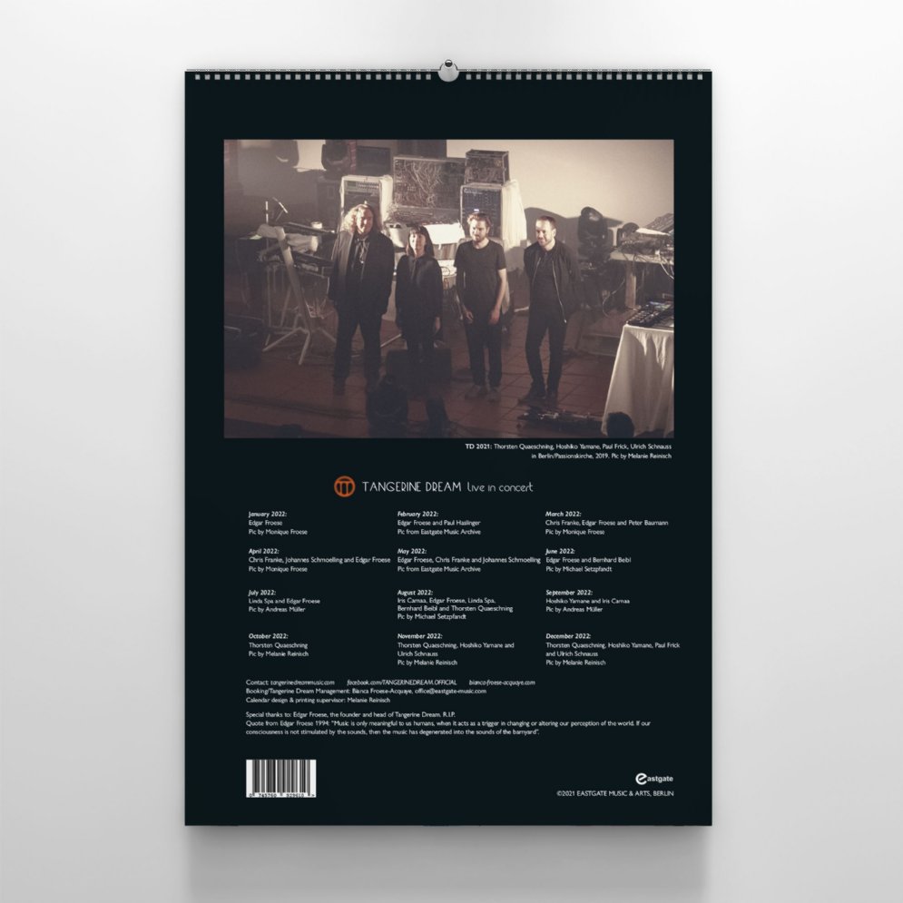 This limited calendar with its beautiful big-sized calendar sheets will accompany you through the year. The calendar shows photos of TD's live performances over the previous decades.