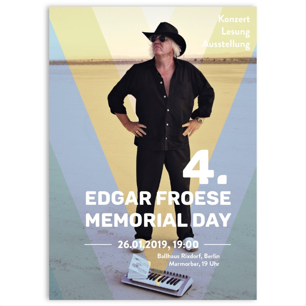 This poster was especially made for the announcement of the Edgar Froese Memorial Day on 26th January at Ballhaus Rixdorf Berlin.