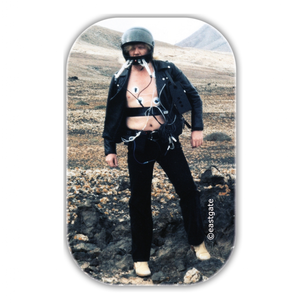 The Dante mask will come together with one eye-catching fridge magnet (4,4 x 6,8 cm) showing Edgar Froese in the desert of the Canary Islands (photo by Monique Froese in 1979) experimenting with micros under his helmet by recording his heartbeats.