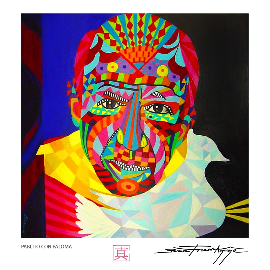 Pablito Con Paloma Print on Canvas#0462-2037Shipment within 2 - 4 working days