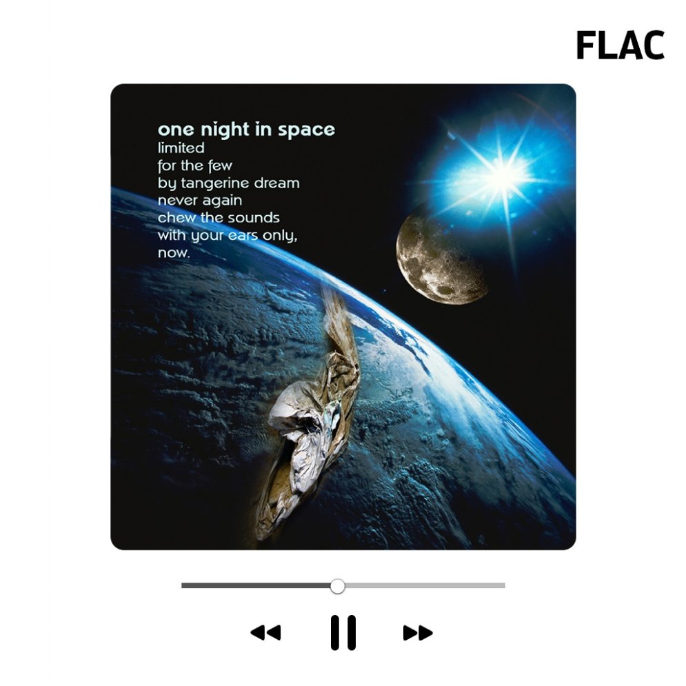 The tracks 'One Night In Space' and 'I Could Hear It When The Moon Collapsed On Broadway' accompanied TD's Frankfurt gig on Oct 7th 2007. They come here as an EP in a limited version. No further pressings was manufactured from this EP title (in this form) - definitely a collector's item! So, enjoy yourself in orbit!!